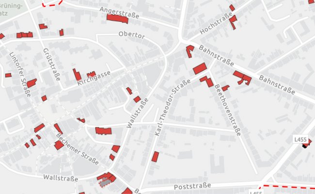 Zur Beantragung der Fördermittel ist es erforderlich, dass sich die Immobilie im Geltungsbereich befindet (siehe Abgrenzung unten), dass mit den geplanten Maßnahmen noch nicht begonnen wurde und dass alle geplanten Maßnahmen von Fachfirmen ausgeführt werden.