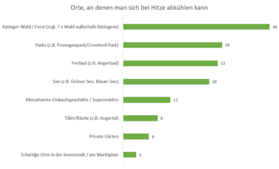 Um mit der Hitze in den Sommermonaten gut umgehen zu können, ist die Stadt auf wichtige Informationen aus der Stadtgesellschaft angewiesen. Deshalb ist im September 2024 eine Online-Umfrage zum Thema Hitze durchgeführt worden. Es haben insgesamt 119 Ratingerinnen und Ratinger an der Umfrage teilgenommen.