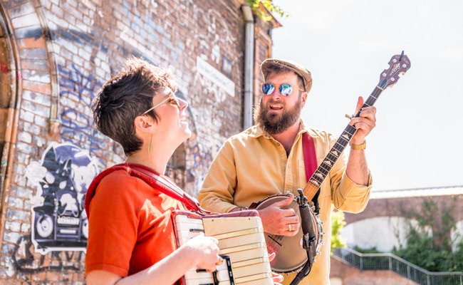 Das Duo Tante Friedl präsentiert Folk- und Weltmusik (6. Mai).