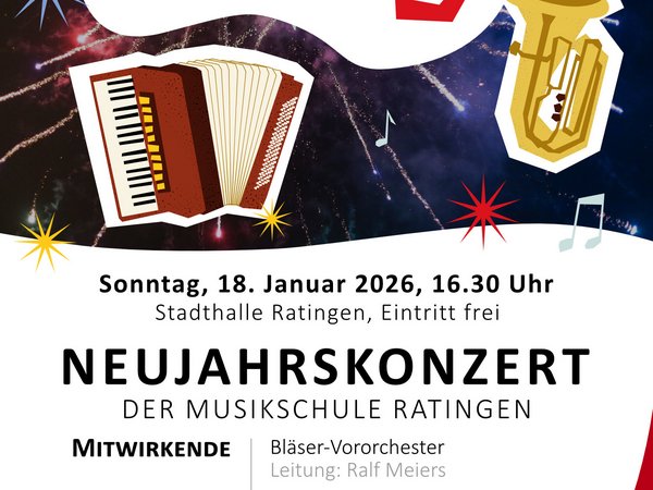 Wir laden herzlich ein zum Neujahrskonzert der Musikschule am Sonntag, den 18. Januar um 16:30 Uhr in der Stadthalle. Eintritt frei.