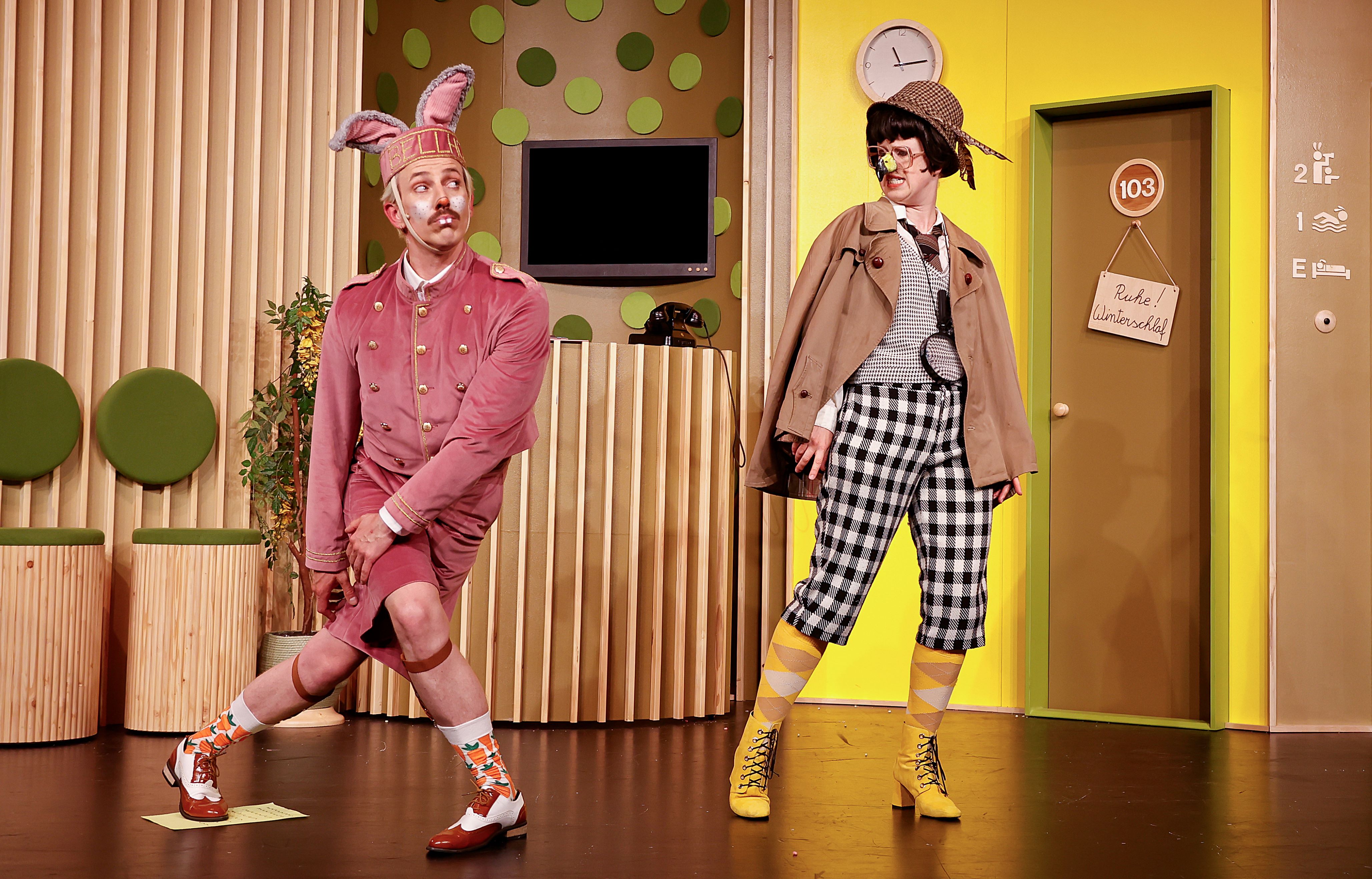 Leider hat es auf das kleine Küken, das schon bald schlüpft, nicht nur der Bär abgesehen, sondern auch Inspektor Falke, der eigentlich auf SchmugglerInnenjagd ist und das Hotel ins Zentrum seiner Untersuchungen stellt. Als sich schließlich auch noch ein zwielichtiges Waschbärengeschwistertrio kurzerhand selbst im Hotel einquartiert und zur neuen Putzkolonne erklärt, ist das Chaos perfekt. Wie soll es Bellhoppschaffen, das im Gewimmel verlorene Küken wiederzufinden, die Waschbären zu bändigen und bei alldem nicht selbst zum Bärenfrühstück zu werden?