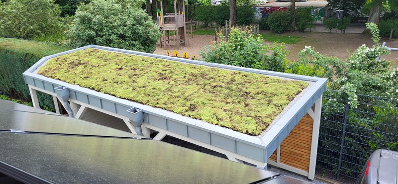 Eines der erfolgreich abgeschlossenen Projekte ist die Begrünung eines 28 Quadratmeter großen Carports im Jahr 2024 durch Familie Korb. „Als wir von der Förderung der Stadt Ratingen erfuhren, war die Antragstellung für uns selbstverständlich. Die Förderung in Höhe von 420 Euro war ein willkommener Zuschuss für die Maßnahme“, erläutert Familie Korb und erzählt weiter: „Wir freuen uns jeden Tag über den Anblick des begrünten Daches und würden die Entscheidung für eine Dachbegrünung immer wieder treffen.“
