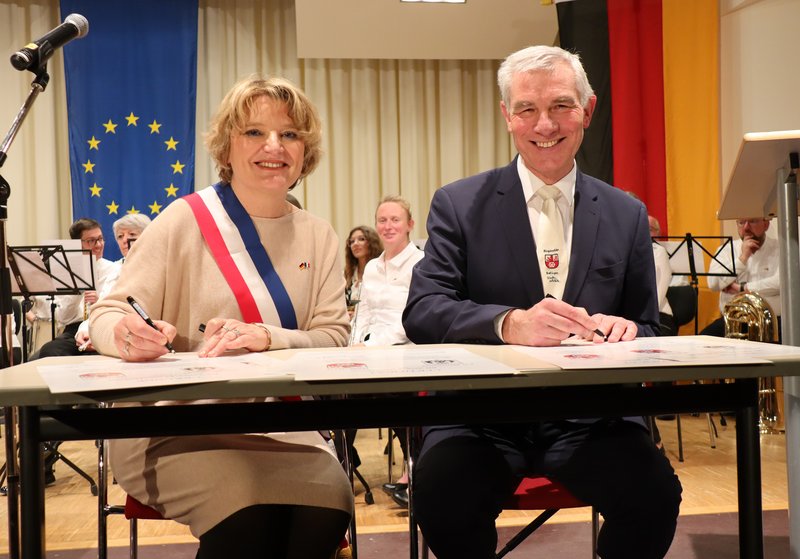 Mit einem Festakt im Ferdinand-Trimborn-Saal am 20. Januar begingen Ratingen und Le Quesnoy ihr 60-jähriges Städtepartnerschaftsjubiläum. Bürgermeister Klaus Pesch und seine französische Amtskollegin Marie-Sophie Lesne unterschrieben Urkunden, mit denen die sechs Jahrzehnte währende Freundschaft feierlich bekräftigt wurde. Neben einer 20-köpfigen offiziellen Delegation war auch die Stadtkapelle der nordfranzösischen Kleinstadt, die „Harmonie Municipale Le Quesnoy“, nach Ratingen gekommen. Sie gab am Sonntag ein gemeinsames Konzert mit der städtischen Musikschule Ratingen.