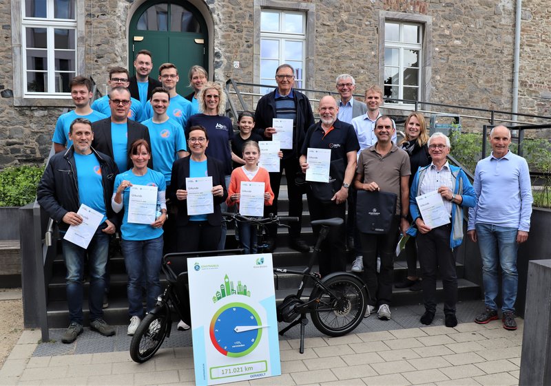935 Radelnde aus oder mit Bezug zu Ratingen haben in der Zeit vom 5. bis 25. Mai insgesamt 171.021 Kilometer im Fahrradsattel zurückgelegt. Wären sie dieselbe Strecke mit dem Auto gefahren, wären durch diese Fahrten 28 Tonnen CO2 ausgestoßen worden. „Diese Klimabilanz kann sich sehen lassen“, sagte Bürgermeister Klaus Pesch bei der Ehrung der besten Teams und Einzelfahrer bei der Aktion Stadtradeln 2024.