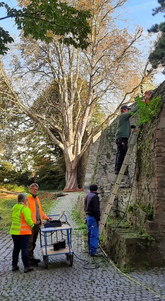 Für die Sanierung der historischen Stadtmauer hat das Amt für Gebäudemanagement Fördermittel beim Land NRW beantragt, die zwischenzeitlich bewilligt worden sind. Die Arbeiten werden in enger Abstimmung mit der Unteren Denkmalbehörde durchgeführt.