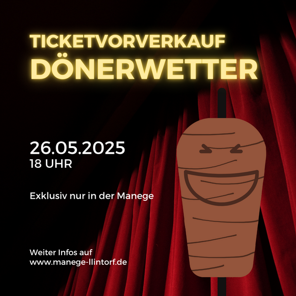 Seit mehr als 15 Jahren gibt es „DönerWetter“, die Kabarettshow mit Volkan Erik und seinen Gästen. Nach den Sommerferien geht`s in der Manege Lintorf an der Jahnstraße 28 in die nächste Staffel, die Termine sind - jeweils mittwochs - am 17. September, 5. November und am 3. Dezember.