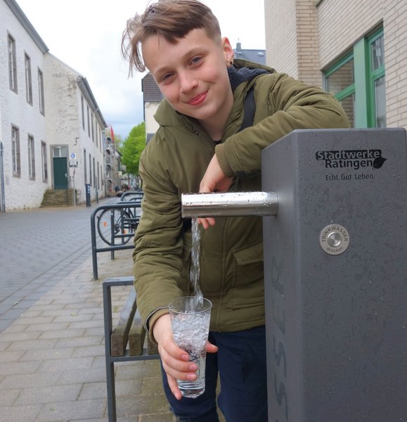 In Ratingen ist der erste öffentliche Trinkwasserbrunnen in Betrieb. Der rund ein Meter hohe, schmale Wasserspender steht gegenüber vom Rathaus, neben dem Eingang zum Verwaltungsgebäude Minoritenstraße 3. Die Stadtwerke Ratingen haben den Brunnen dort im Auftrag der Stadt aufgestellt und angeschlossen, nach einer letzten Hygieneprüfung erfolgte nun die Inbetriebnahme.