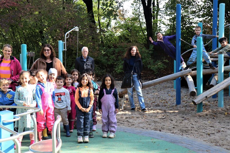 Am Tag vor der Eröffnung hatte es noch durchgeregnet, am Eröffnungstag selbst gingen am Vormittag kräftige Schauer nieder, aber als am Nachmittag die Kinder der Kita Breslauer Straße kamen, strahlte die Sonne. „Die scheint extra für uns“, sagte die stellvertretende Bürgermeisterin Barbara Esser bei der offiziellen Eröffnung des ersten vollständig inklusiven Spielplatzes in Ratingen am Grünen See am 10. Oktober.