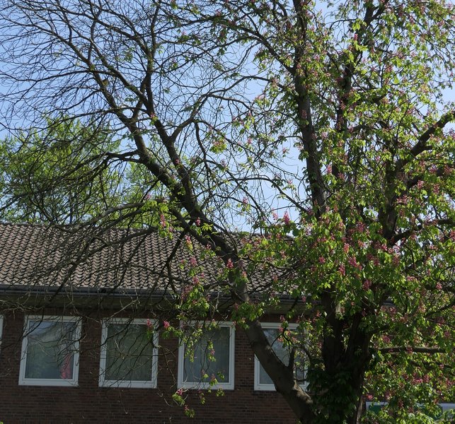 Die alte Rosskastanie vor dem ehemaligen Rathaus in Lintorf stirbt ab und muss in Kürze leider gefällt werden. Dieser nicht mehr aufzuhaltende Prozess begann schon vor mehreren Jahren durch das vermehrte Auftreten von Pilzen und Schädlingen (zum Beispiel Kastanienminiermotte oder Blattbräune) und ist eine Folge der klimatischen Veränderungen. So wurde die geschwächte Kastanie anfällig für den Befall von holzzerstörenden Pilzen. In Verbindung mit dem Bakterium Pseudomonas syringae pv.aesculi spricht man hier von der Kastanien-Komplexerkrankung, da hier nicht ein einziger Schädling sondern die Vielzahl von Kalamitäten (massenhafte Schädigungen) letztendlich den Baum absterben lässt. Durch diese Komplexerkrankung mussten bereits in den vergangenen Jahren Kastanien am Hauser Ring und am Stadionring gefällt werden.