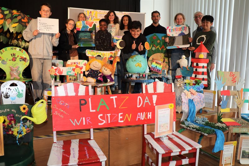 Platz da! Wir sitzen auch hier“ lautet der Titel einer aktuellen Kunstausstellung im Medienzentrum am Peter-Brüning-Platz 3. Anlässlich des diesjährigen Weltkindertages haben junge Künstlerinnen und Künstler ihre Ideen, Wünsche und Gedanken zu diesem Thema fantasievoll umgesetzt, um auf sich aufmerksam zu machen und ein Zeichen für ihre Rechte zu setzen. Dabei steht ein simples Möbelstück im Mittelpunkt: der Stuhl. Rund 50 dieser Möbelstücke sind in Kitas, Schulen, Ogatas, Jugendzentren und Kindergruppen entstanden und werden nun noch bis zum 31. Oktober der breiten Öffentlichkeit präsentiert.