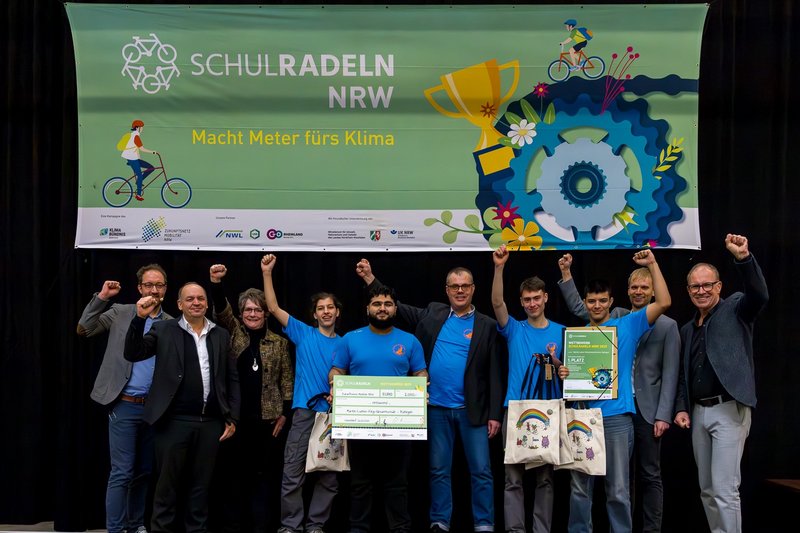 Für die bestplatzierten Teams gab es Preise und Urkunden, die Viktor Haase, Staatssekretär im NRW-Ministerium für Umwelt, Naturschutz und Verkehr in den Abenteuerhallen Köln-Kalk in Anwesenheit der Ratinger Mobilitätsdezernentin Petra Cremer überreichte: „Die große Beteiligung zeigt, wie selbstverständlich der tägliche Weg mit dem Fahrrad für viele ist. Das bringt Bewegung in den Alltag, entlastet das Klima und macht Schulwege sicherer. Das Schulradeln setzt dafür wichtige Impulse.“ Die Unfallkasse NRW als Mitpräsentator des diesjährigen Schulradelns ergänzte die Preise des Landes um weitere Geschenke für die Preisträger.