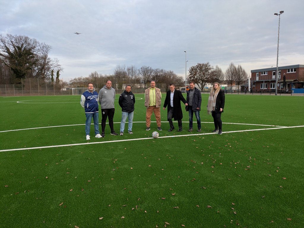 Nach Abschluss der Sportplatz-Modernisierung in Tiefenbroich übergab Bürgermeister Patrick Anders jetzt symbolisch den Schlüssel an die Vereinsverantwortlichen des ASV Tiefenbroich. Die Stadt Ratingen investierte rund 1,8 Millionen Euro, um an der Sohlstättenstraße eine moderne Sportfreianlage mit Kunstrasenspielfeldern und Nebenanlagen zu schaffen.