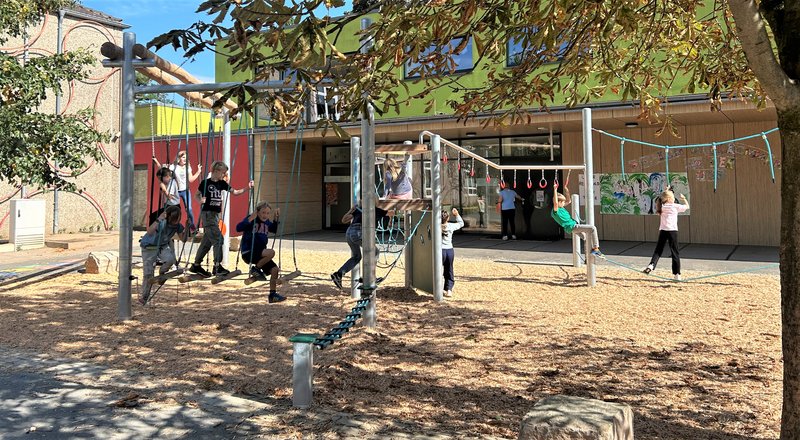„Die einzelnen Elemente des Motorik-Parcours fördern koordinative Fähigkeiten und Kraft sowie ein gutes Gleichgewichtgefühl“, sagt der zuständige Beigeordnete Prof. Dr. Bert Wagener. Sie sind zusammen mit der Schulleitung ausgewählt worden. Da auf dem großen Schulhof eine Kletterspielanlage hatte weichen müssen, um Platz für einen Neubau zur Schaffung von dringend benötigten OGS-Plätzen zu schaffen, wurde der neue Motorik-Parcours auf dem „kleinen Schulhof“ mit besonderer Begeisterung angenommen.