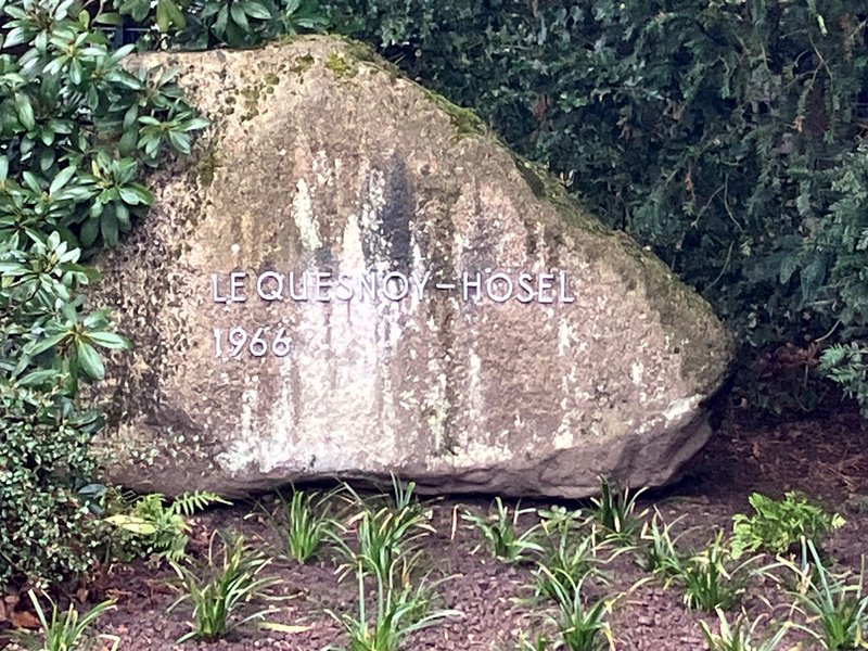 Die kleine Grünfläche rund um den Gedenkstein zur Städtepartnerschaft mit Le Quesnoy an der Eggerscheidter Straße in Hösel wurde pünktlich zum Frühlingsanfang erneuert. Auch der Gedenkstein mit dem Schriftzug „Le Quesnoy – Hösel 1966“ erfüllt wieder seine Funktion. Der Steinmetzbetrieb Lepper hat neue Lettern aus Aluminium angebracht, nachdem die Original-Lettern im vorigen Jahr aus unerfindlichen Gründen gestohlen worden waren.