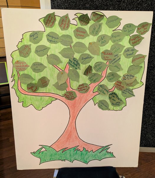 Die Motivation in den Kitas und Schulen ist jedenfalls groß. Das wurde bei der Auftaktveranstaltung deutlich, und natürlich fangen die meisten Einrichtungen beim Thema Klimaschutz auch nicht bei Null an. Als Katja Hansen-Röhe, Geschäftsführerin von einsfünf°, die Anwesenden bat aufzuschreiben, welche Maßnahmen zum Klima- und Ressourcenschutz sie jetzt schon in ihren Einrichtungen durchführen, und die Kärtchen auf einem „Maßnahmenbaum“ anzubringen, füllte sich der Baum ganz schnell. Aber das galt auch für den anderen Baum, der für Dinge vorgesehen war, die man noch machen will.