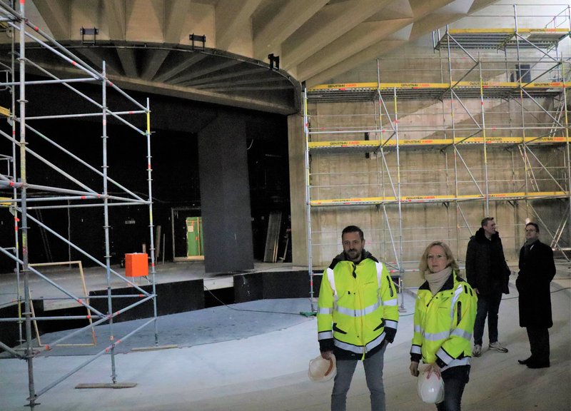 Seit acht Monaten gehört das Stadttheater den Bauarbeitern. Ende März fiel der vorläufig letzte Vorhang, seitdem wird kernsaniert. Nun ist das Großprojekt an einem Wendepunkt angekommen. Das Gebäude ist vollständig entkernt, ab jetzt wird wiederaufgebaut. Bei einem Besuch in der fast leeren Gebäudehülle erläuterten Vertreter der Bau- und Kulturverwaltung mit den Dezernenten Martin Gentzsch und Patrick Anders sowie die Planer des Architekturbüros SSP, was die Ratingerinnen und Ratinger erwartet, wenn sie in etwas mehr als einem Jahr wieder ihr Theater besuchen können. Das Projekt schreitet gut voran, die Wiedereröffnung ist für März 2025 geplant.