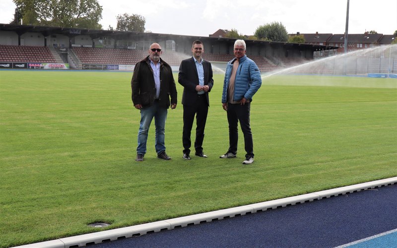 „Dieses Spitzenspiel der Oberliga Niederrhein ist natürlich ein absolut würdiges Event zur Einweihung unseres neuen Rasens, der höchsten Ansprüchen genügen sollte“, sagte Sportdezernent Patrick Anders bei der Abnahme. Beide Teams sind furios in die Saison gestartet, Ratingen 04 ist aktuell Tabellenführer, der überraschend starke Aufsteiger aus Jüchen liegt auf Platz 3. Anders: „Ich hoffe auf ein Fußballfest mit hoffentlich vielen Zuschauern.“