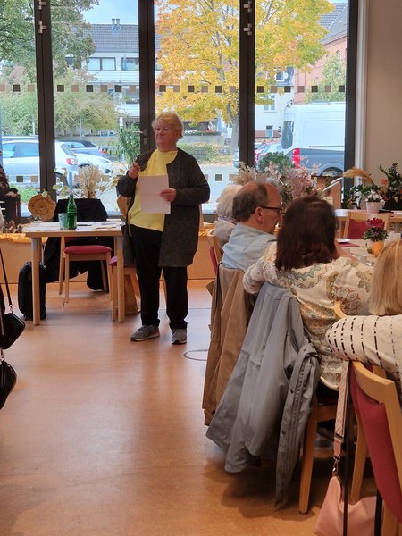 Melda-Sabine Fischer ist 72 Jahre und seit 2009 wohnhaft in Krefeld. Im Jahr 2015 entdeckte sie ihre Liebe zum Schreiben humorvoller Gedichte. Geholfen haben ihr dabei die Erfahrungen als aktive Karnevalistin unter anderem bei der Prinzengarde „Blau-Weiss“ in Ratingen. Die Humoristin war selbst auch sehr begeistert von der Resonanz und der guten Atmosphäre im Treff Tiefenbroich. „Ich komme jetzt jeden Freitag vorbei“, versprach sie mit einem Augenzwinkern am Ende der Veranstaltung, so dass die Besucherinnen und Besucher sich schon auf ein Wiedersehen freuen können.
