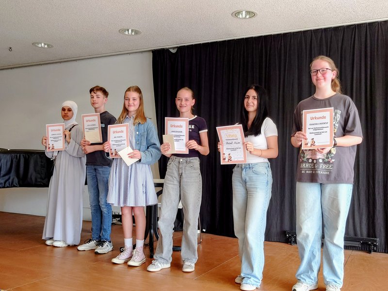In der Pause beriet sich die Jury, in der neben Sabine Köchling und Sabrina Schönfelder von der Stadtbibliothek noch Vertreter der Buchhandlung Peter & Paula, der Altstadtbuchhandlung und der Buchhandlung Rose Schlüter saßen. Am Ende waren sich alle einig: Hier haben sechs echte Lesehelden gelesen. Sie wurden mit einer Urkunde, einem Buchgutschein und tosendem Applaus belohnt. Hazal von der Martin-Luther-King-Gesamtschule war dabei noch ein wenig besser als ihre Mitstreiter und erhielt dafür noch einen Gutschein für das Ratinger Kino. Alle Mitwirkenden haben die Veranstaltung genossen und freuen sich auf die Fortsetzung im neuen Schuljahr.